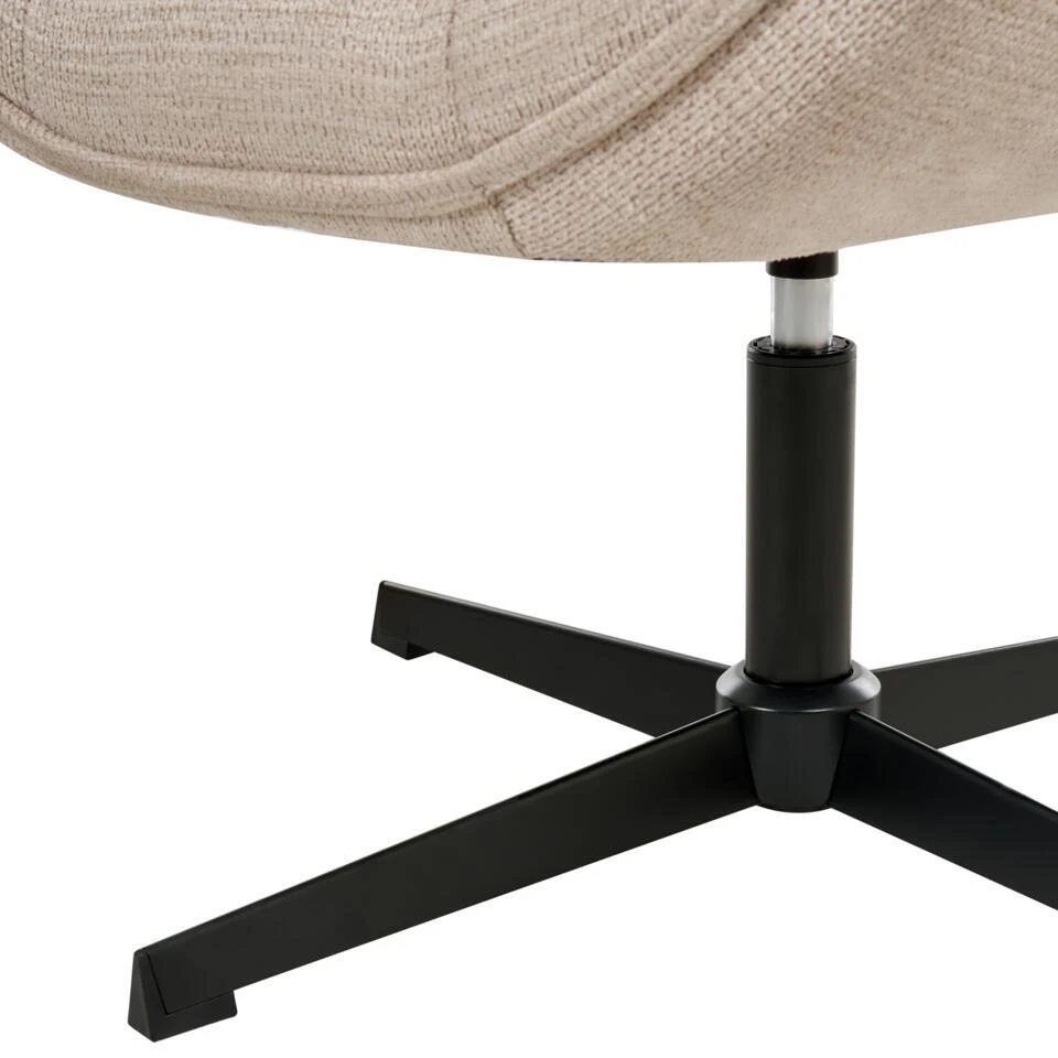 Belangrijkste eigenschappen: 360ยฐ draaibaar, Elegant accentstuk, Perfect voor zowel slaapkamer als woonkamer, Hoogwaardige kwaliteit stoffering, Robuust frame, De waterafstotende afwerking zorgt ervoor dat gemorste vloeistoffen op het oppervlak blijven