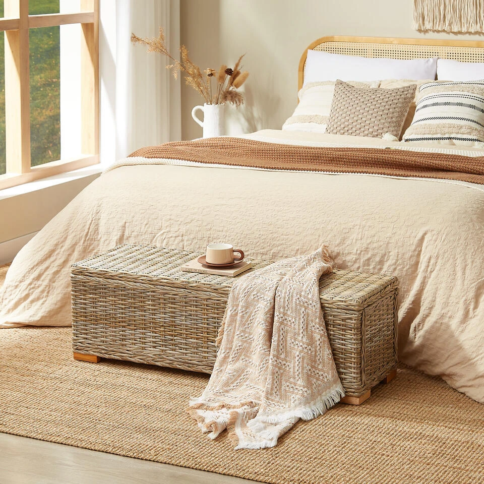 Bank Ingang Scandinavische Slaapkamer Hout Rotan Natuurlijke Vezels