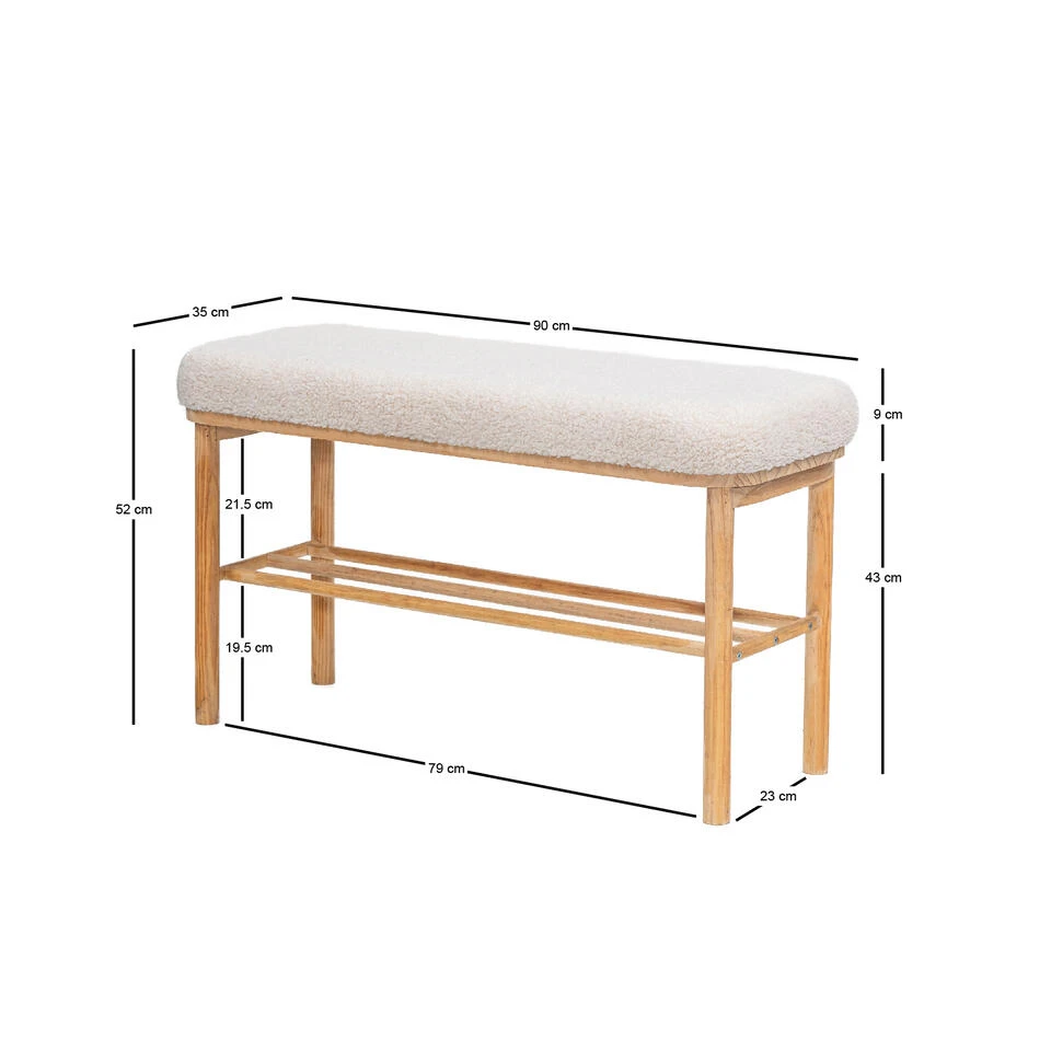 Productafmetingen = 90 x 35 x 52,5 cm / Zithoogte = 52,5 cm / Zitdiepte = 35 cm / Productgewicht = 5,5 kg / Totaal gewicht van het pakket = 6,5 kg / Maximaal ondersteund gewicht = 120 kg / Product moet worden gemonteerd = Ja / Stapelbaar product = Nee / Certificering 1 = Duurzaam FSC-gecertificeerd hout / Houtafwerking = Natuurlijke kleur.