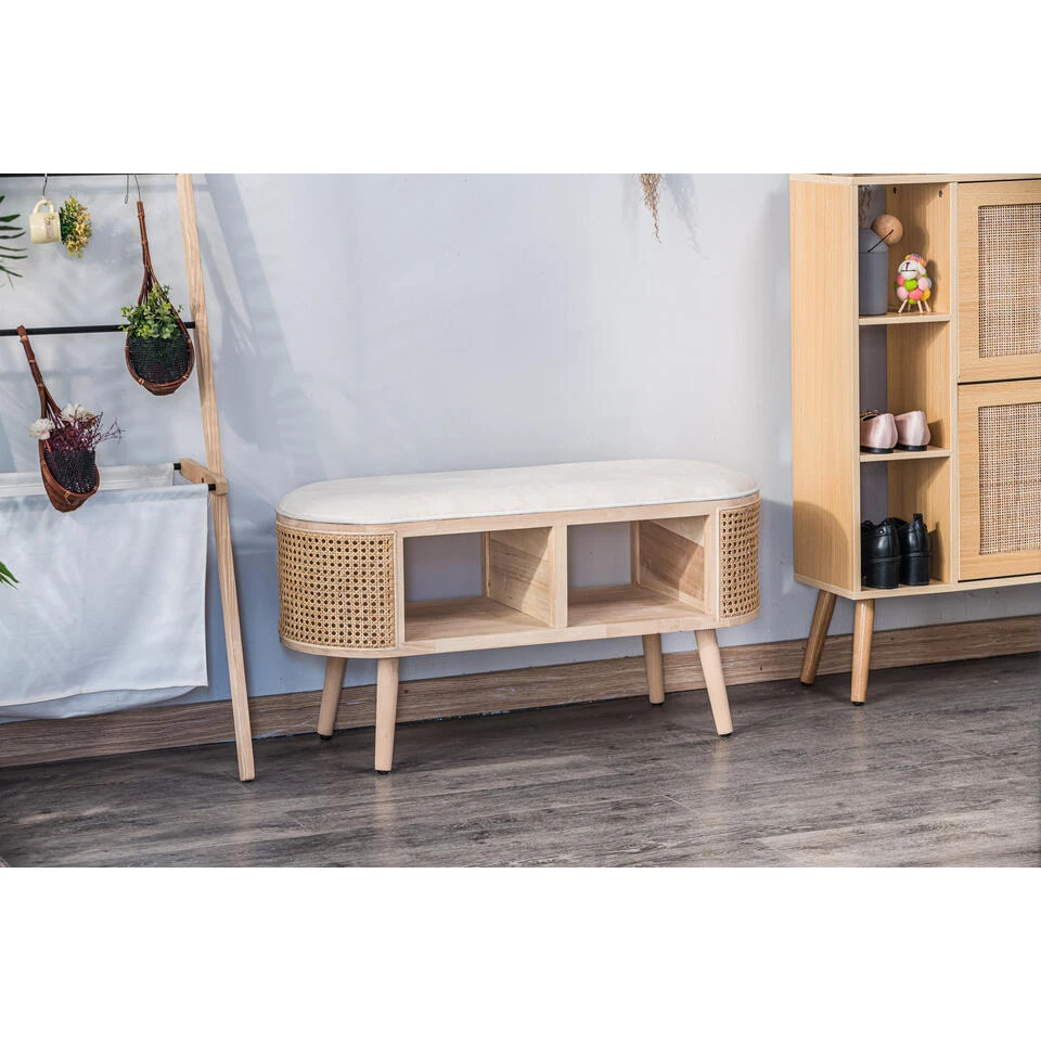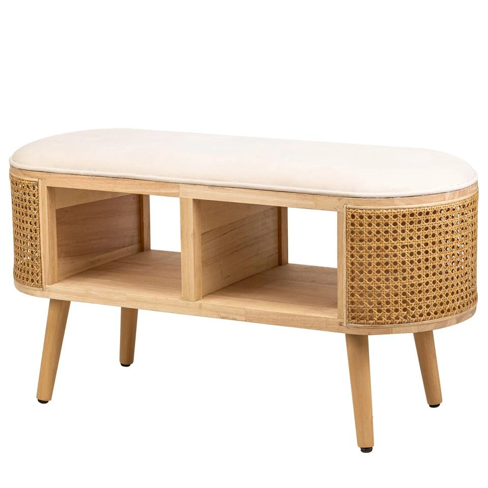 Bank Met Opbergruimte Van Rotan En Beige Fluweel