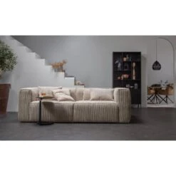 WOOOD Bean Hoekbank Rechts – Ribstof – Travertin – 73x305x96