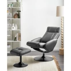 APATE – Relaxfauteuil Met Voetenbank – Zwart – Veganistisch Leer