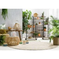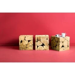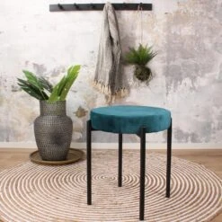 Atmosphera Zit Krukje – Hout/stof – Beige Fluweel – D35 X H40 Cm