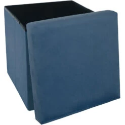 Atmosphera Poef/hocker – Opbergbox – Blauw – PU/MDF – 38 X 38 Cm