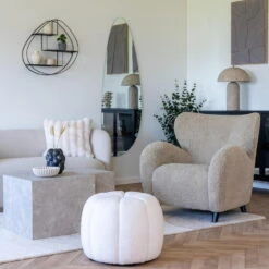 Poef Lichtbruin Stof – Zithoogte 33cm – Ø50x33cm – Inverness