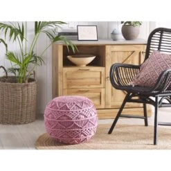 Beliani Poef BARBEL – Beige Waterhyacinth, Zeewier, Palmblad