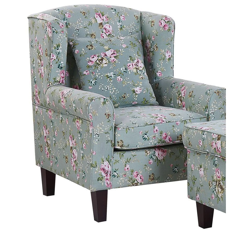 Fauteuil met vierkante hocker in groen. Verfraai jouw interieur met deze decoratieve, functionele fauteuil versierd met een elegant bloemmotief op groen. Het unieke, maar veelzijdige ontwerp past goed bij een verscheidenheid aan interieurs. De dik gewatteerde zitting en brede rugleuning garanderen optimaal comfort en de houten poten zorgen voor een stabiele stand. Bovendien helpen de hocker en het extra kussen je om te ontspannen na een lange en stressvolle dag.
