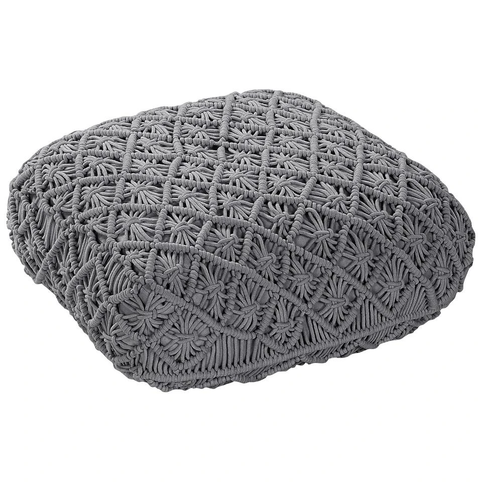 Vloerkussen Gewoven kussen met macrame patroon. Zorg voor extra zitruimte met dit vloerkussen in Boho stijl. Het kussen heeft een prachtig macramé patroon en is gemaakt van zacht katoen. Door de gebruikte materialen is het kussen ervoor gemaakt om jaren lang mee te gaan en je hoeft het niet dagelijks te verzorgen. Het kussen kan op heel veel verschillende manieren worden gebruikt, bijvoorbeeld als extra zitting, voetenbankje of gewoon als decoratie.