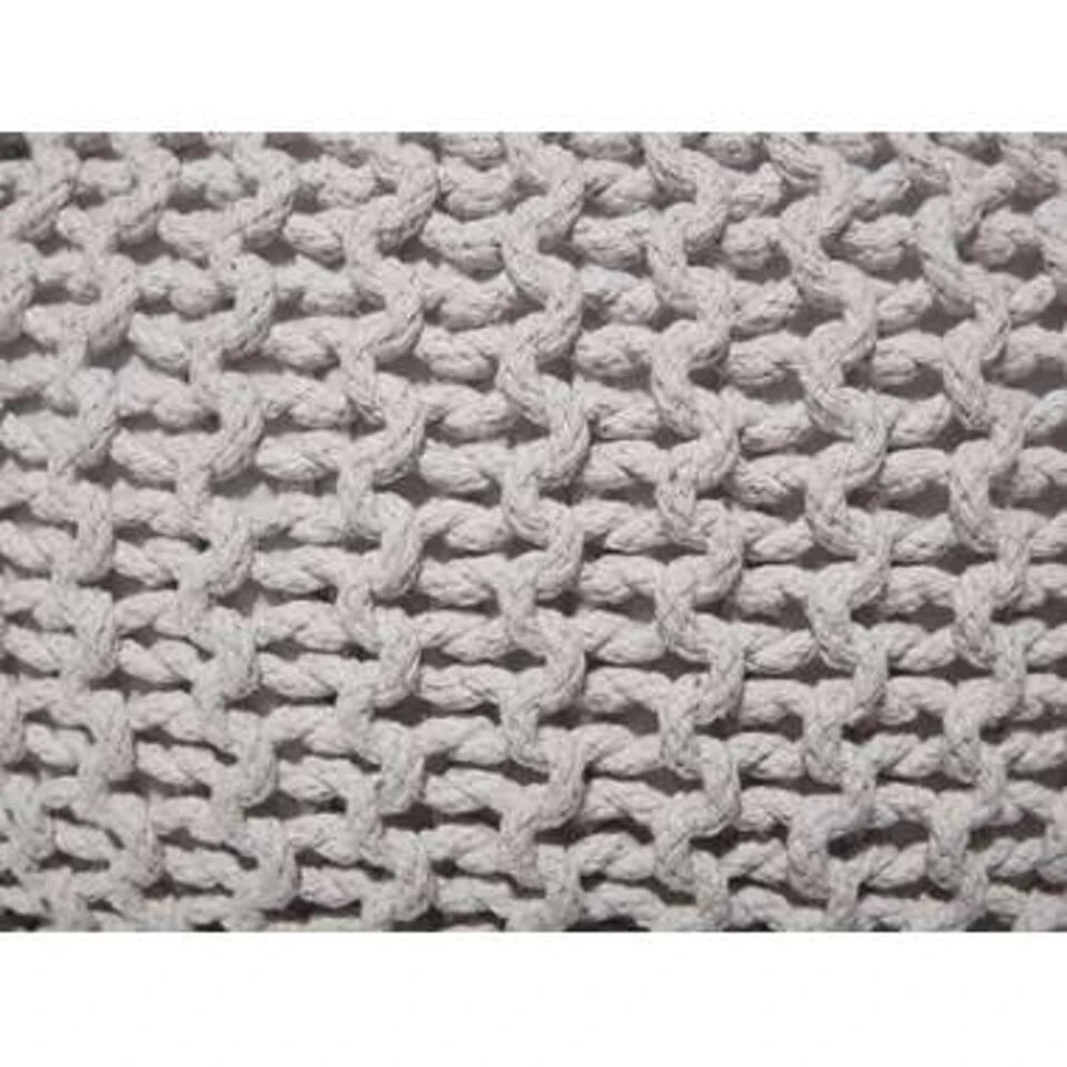 Lichtgrijze ronde poef. Als je op zoek bent naar een vrolijk accent om je interieur op te vrolijken, dan is deze schattige gebreide ronde poef perfect. Met dik weefsel in een warme kleur en stevige, hoogwaardige vulling, kan het dienen als voetenbank, als basis voor een tafeltje of gewoon als decoratief stuk – de mogelijkheden zijn eindeloos. Wees creatief met het mixen van kleuren en maten om een ideale compositie voor je woonruimte te maken en geniet van de charmante moderne sfeer.