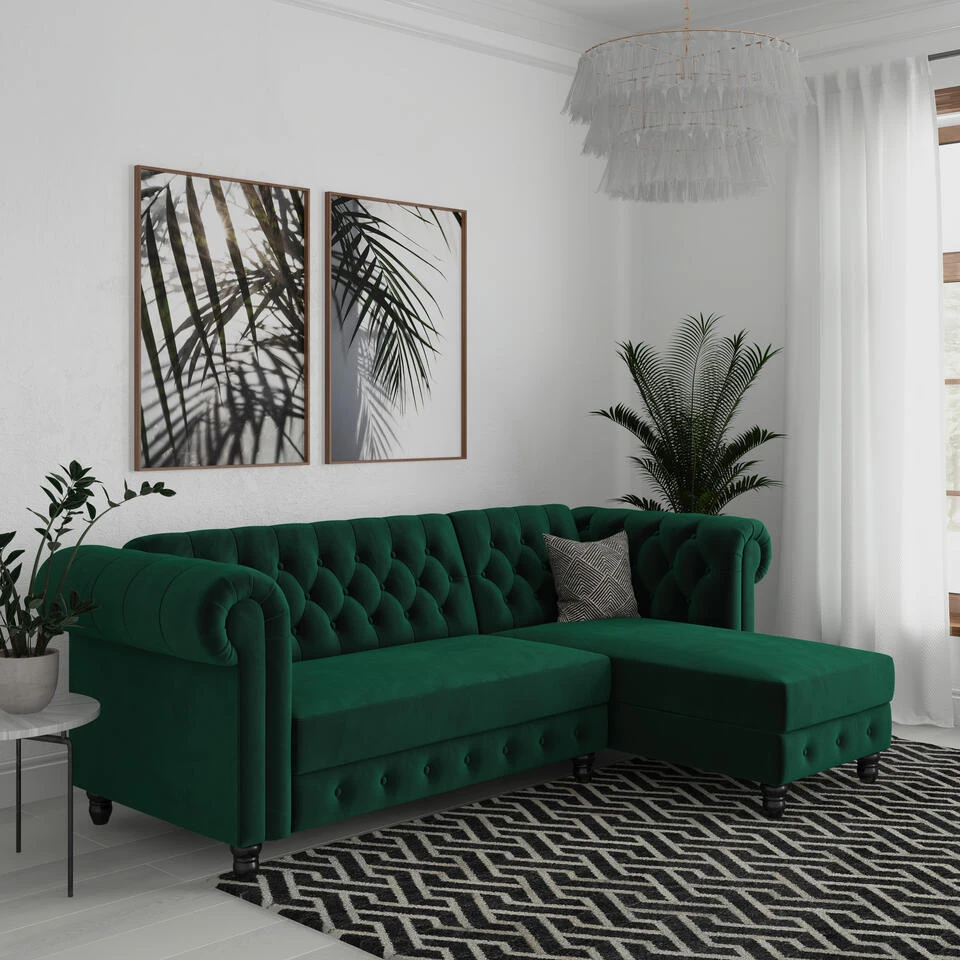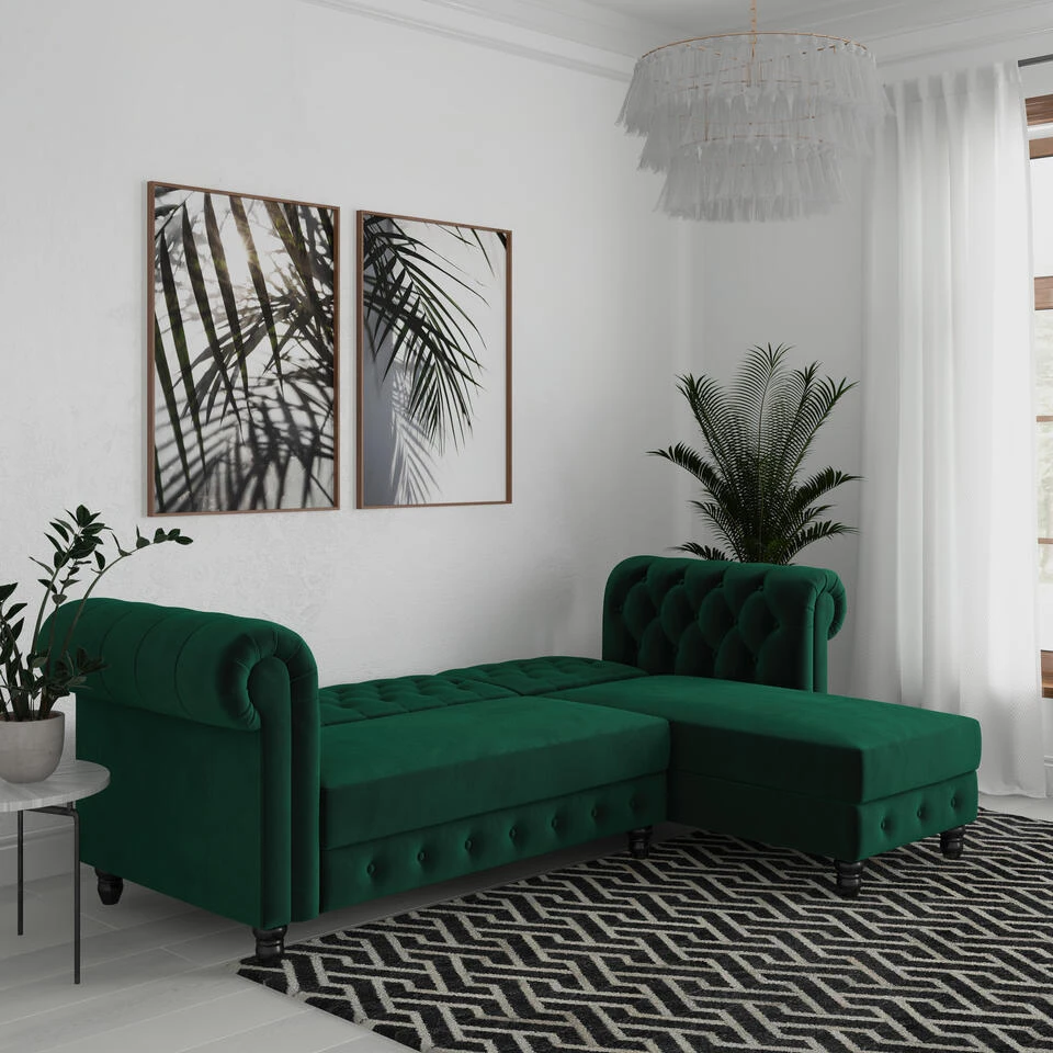 Felix – 3-zits Hoekslaapbank In Groen Fluweel