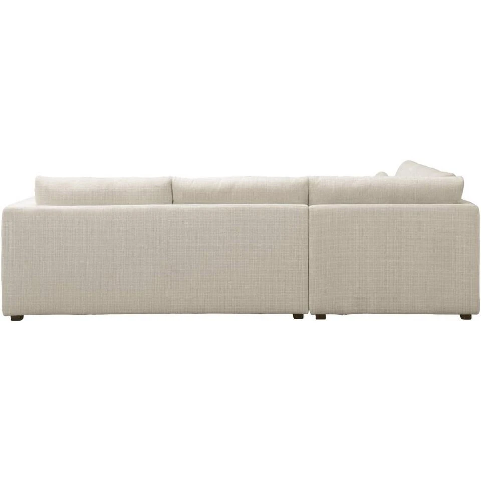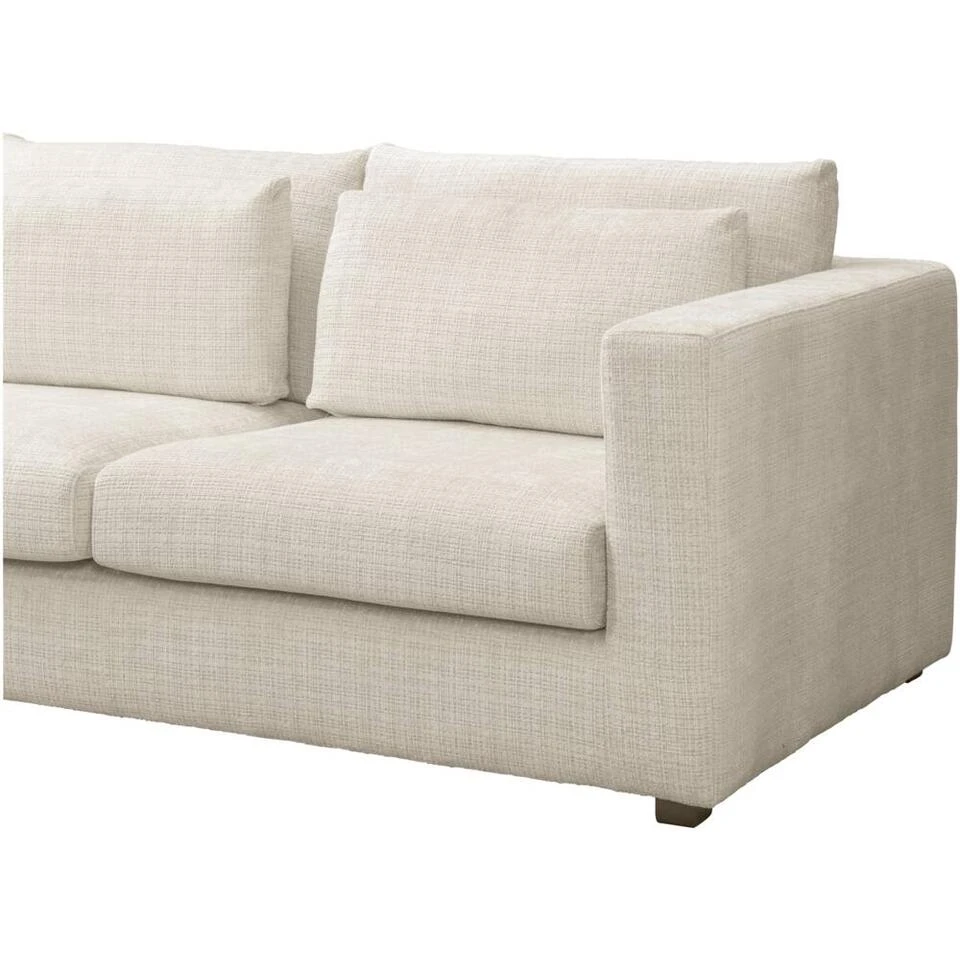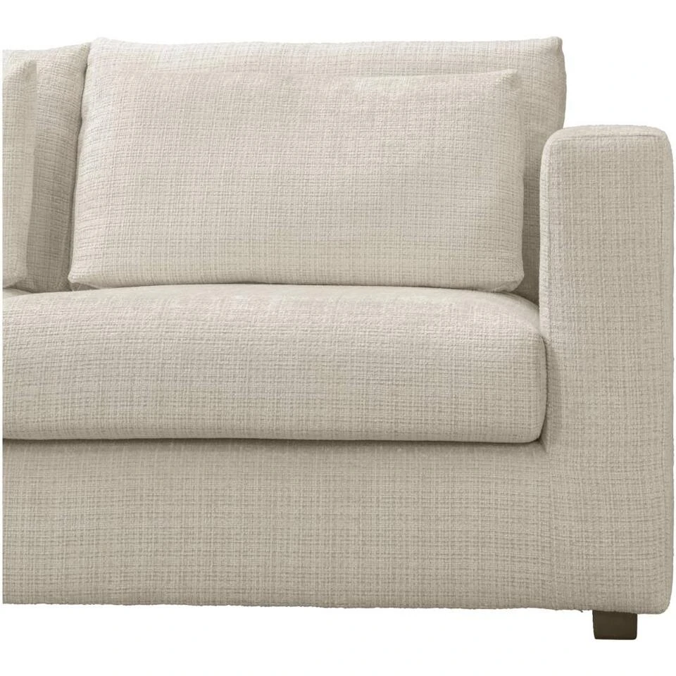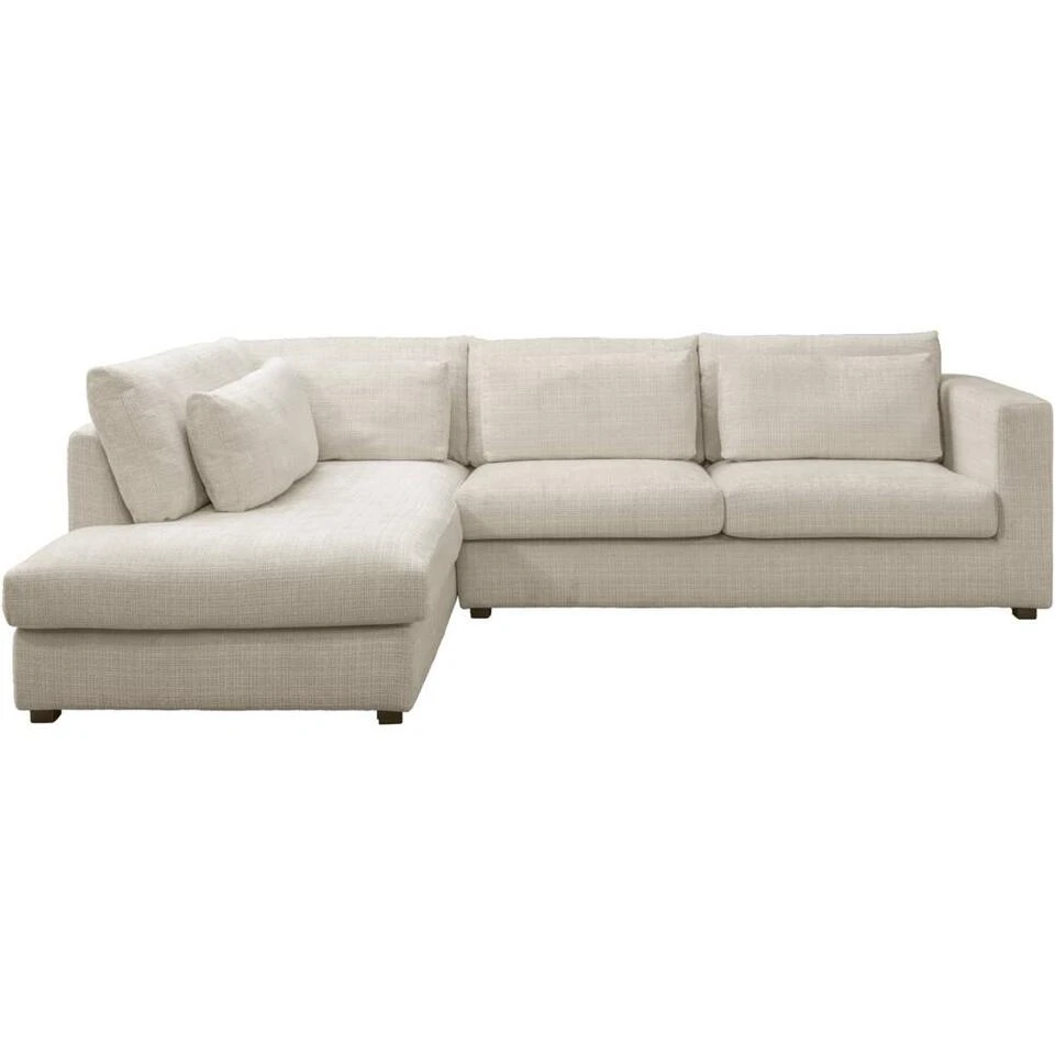 Hoekbank Chelsea is een elegante bank met een moderne look. Een échte plofbank met een bewust gecreëerd nonchalant karakter. De bank is gestoffeerd met stof Cyclamen in de kleur off-white en heeft een hoek aan de linkerkant. Bank Chelsea heeft een dubbele rij kussens. De voorste kussens zijn alleen bedoeld voor extra comfort. Klop deze voorste kussens meerdere keren per week goed op zodat de kussens hun vorm behouden. De kussens hebben een losse vulling en dit draagt bij aan het nonchalante karakter van deze bank. De romp is lekker diep dus dit is de ideale loungebank.