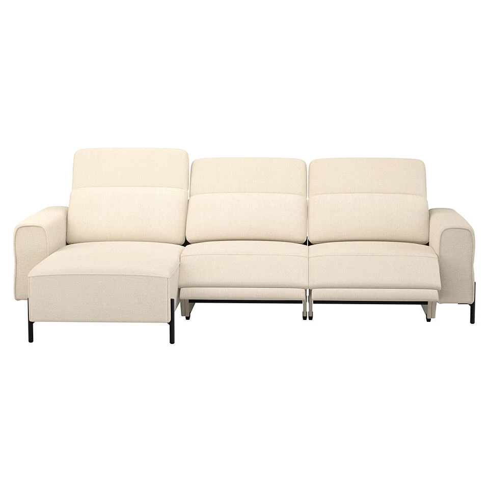 Bank Dave is de perfecte hoekbank voor wie op zoek is naar een comfortabele bank met elektrisch verstelbare voeten en rugleuningen. De crèmekleurige stof heeft een speels effect en geeft de bank een trendy uitstraling. Of je nu met de voetjes omhoog een film kijkt of liever in de linkerhoek van deze bank ontspannen een boek leest, bank Dave biedt ultiem comfort.