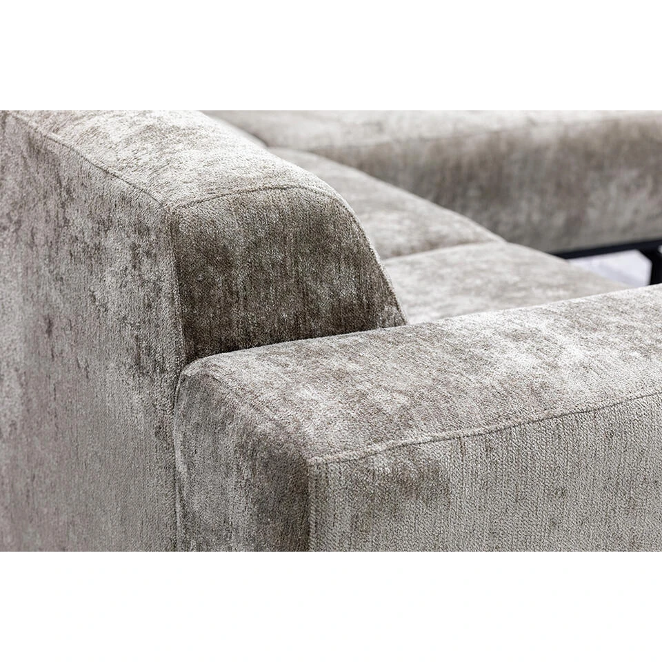 Hoekbank Lola heeft een sfeervolle en moderne uitstraling in een trendy beigekleurige stof. De bank heeft een hoek aan de rechterkant en is voorzien van slanke metalen poten. Deze ruime hoekbank is perfect voor het hele gezin. Als jij houdt van een bank met veel comfort en een moderne uitstraling, dan is deze bank een echte musthave!