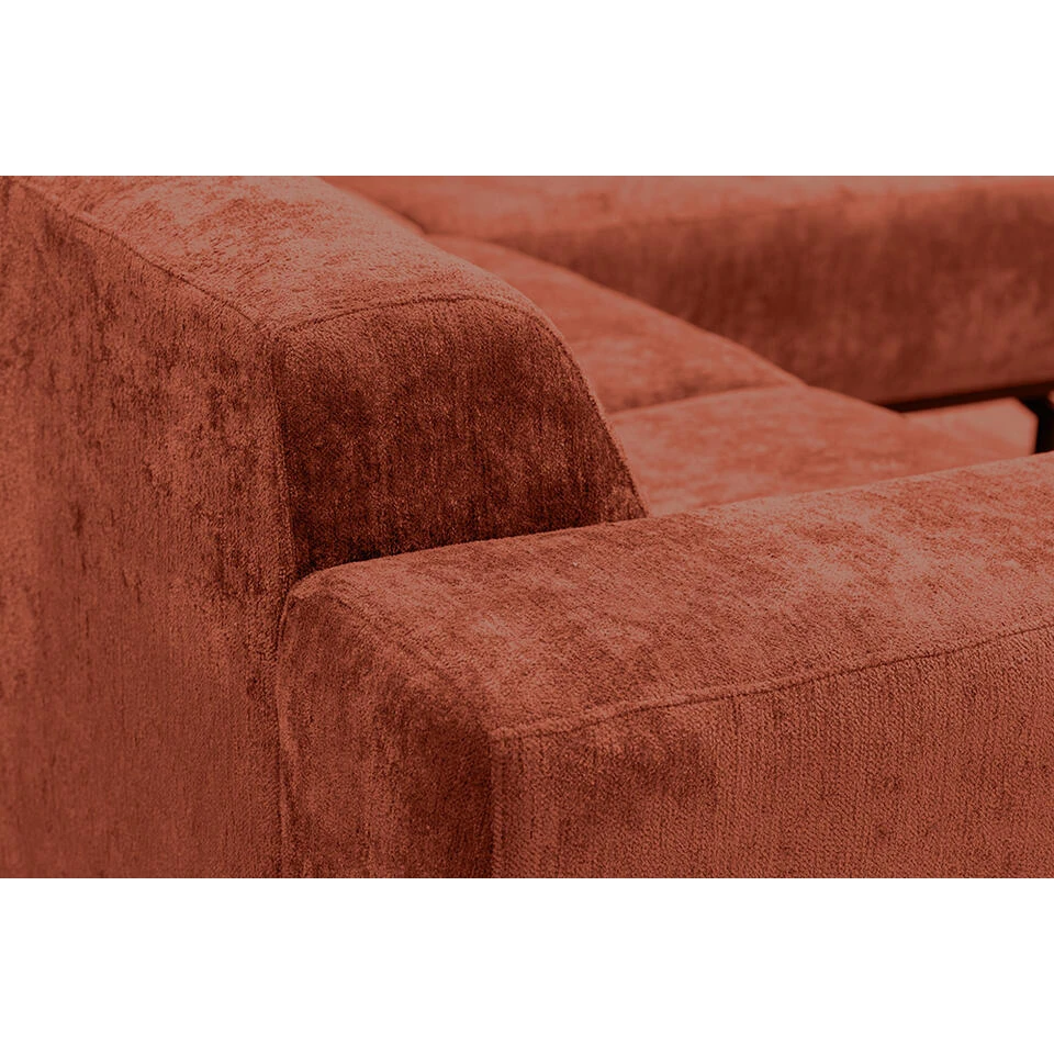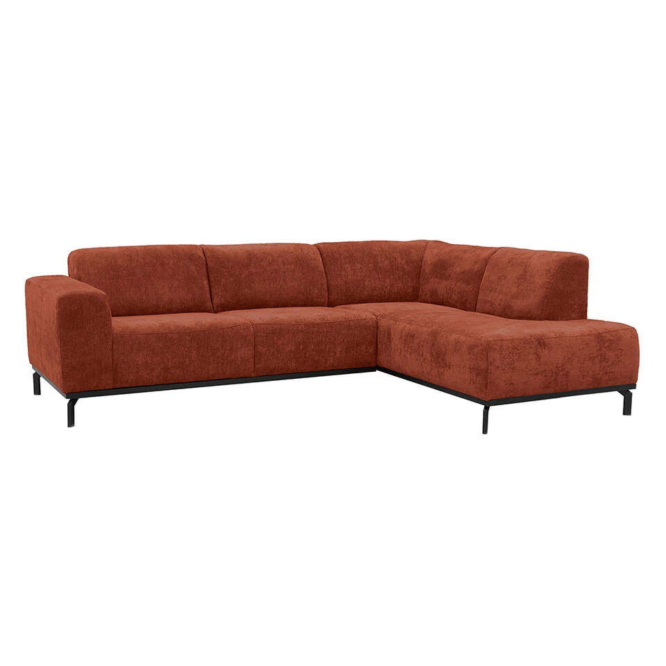 Hoekbank Lola heeft een sfeervolle en moderne uitstraling in een trendy terracottakleurige stof. De bank heeft een hoek aan de rechterkant en is voorzien van slanke metalen poten. Deze ruime hoekbank is perfect voor het hele gezin.ย Als jij houdt van een bank met veel comfort en een moderne uitstraling, dan is deze bank een echte musthave!