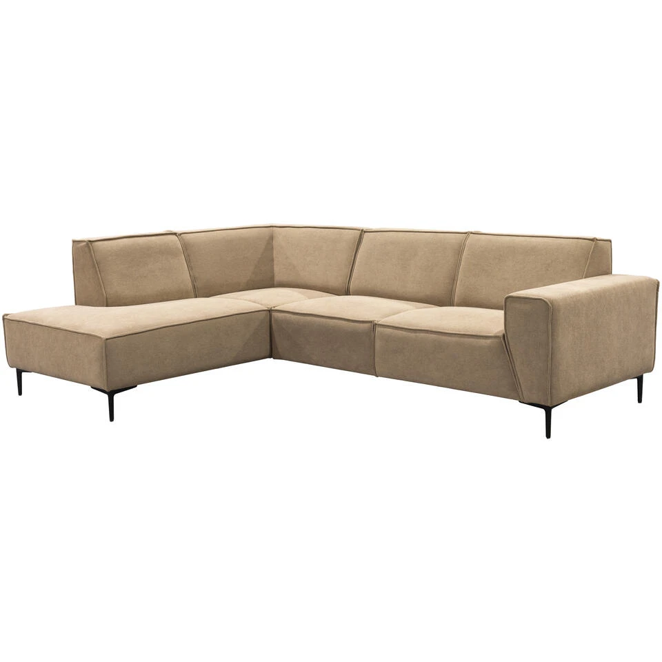 Hoekbank Romy heeft een sfeervolle en moderne uitstraling in een trendy beigekleurige stof. De bank heeft een hoek aan de linkerkant en is voorzien van slanke metalen poten. Deze ruime hoekbank is perfect voor het hele gezin.ย Als jij houdt van een bank met veel comfort en een moderne uitstraling, dan is deze bank een echte musthave!