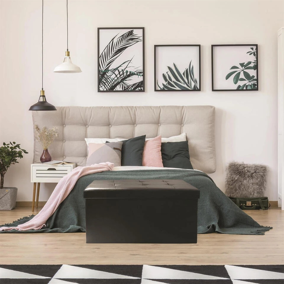 Home Deco Factory poef Essestiel. Slim, stijlvol en opvouwbaar: deze zwarte hocker uit de Essestiel-serie is de ideale combinatie van comfort en functionaliteit. Hij biedt een royale opbergruimte voor spullen die je liever uit het zicht houdt en is in een handomdraai op te vouwen wanneer je ‘m even niet nodig hebt. De zachte polyester bekleding en strakke vormgeving maken hem tot een subtiele blikvanger in elk interieur. Perfect voor kleine woningen, studentenkamers of als extra opberger in de hal of slaapkamer.