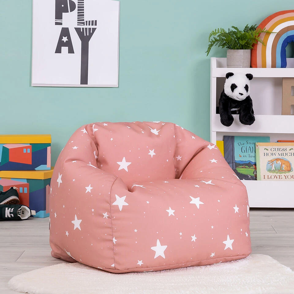 PRAKTISCHE STIJL; Deze stijlvolle zitplek past in allerlei speelkamers, slaapkamers en woonruimten. Deze speelse stoel is gemaakt van stof die tegen een buitje kan en is ideaal voor dagelijks gebruik.