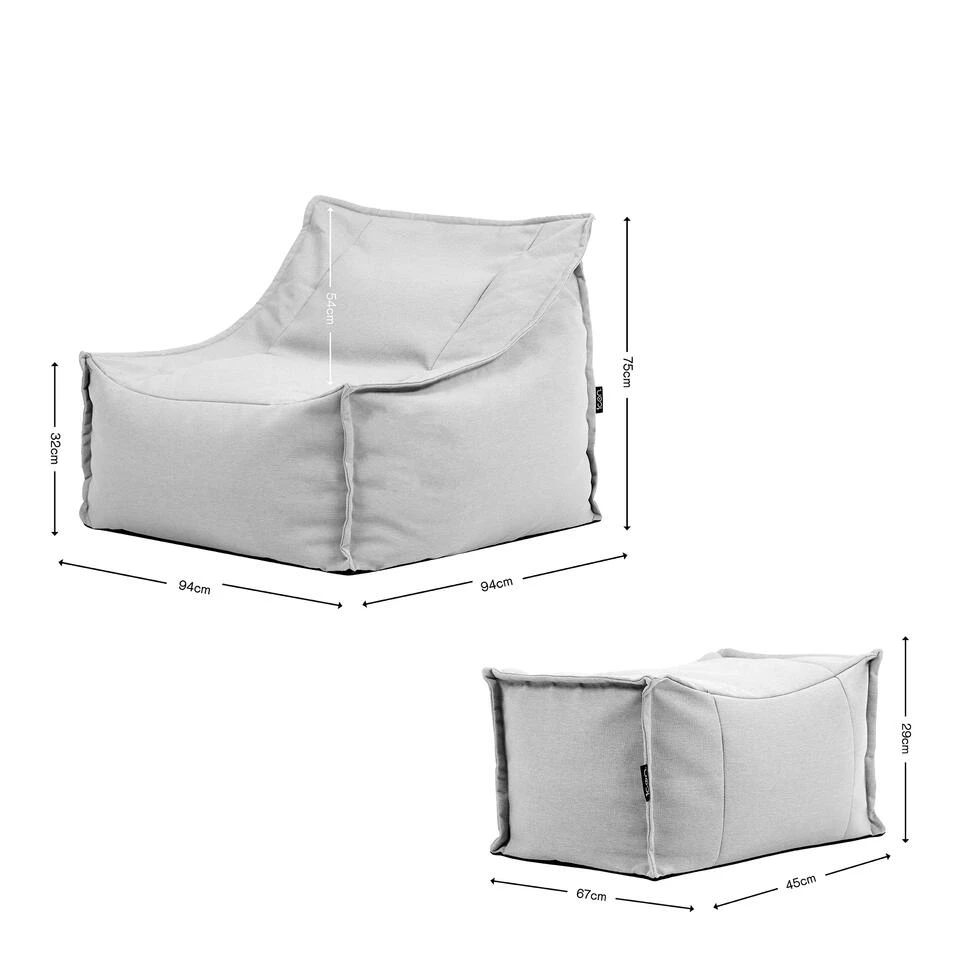 VULLING ZITZAK: Zitzakstoel en -voetenbank voor buiten met vulling inbegrepen. Dit product wordt geleverd in meerdere dozen; geen gereedschap nodig voor montage! Licht en draagbaar.
