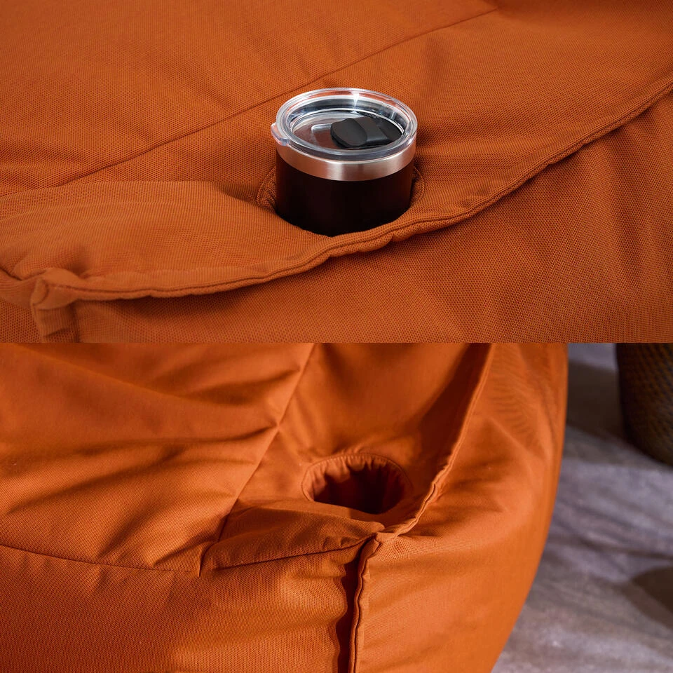 ONDERSTEUNENDE STOELSET: Deze zitzakset heeft een ondersteunend zitvlak, een innovatief design met vlakken en een slimme interne materiaalstructuur waardoor de comfortabele vorm behouden blijft. Hij heeft zelfs een bekerhouder en is een perfect alternatief voor een traditionele tuinstoel. Vanwege de structuur van met korrels gevulde producten kunnen de afmetingen enigszins afwijken.