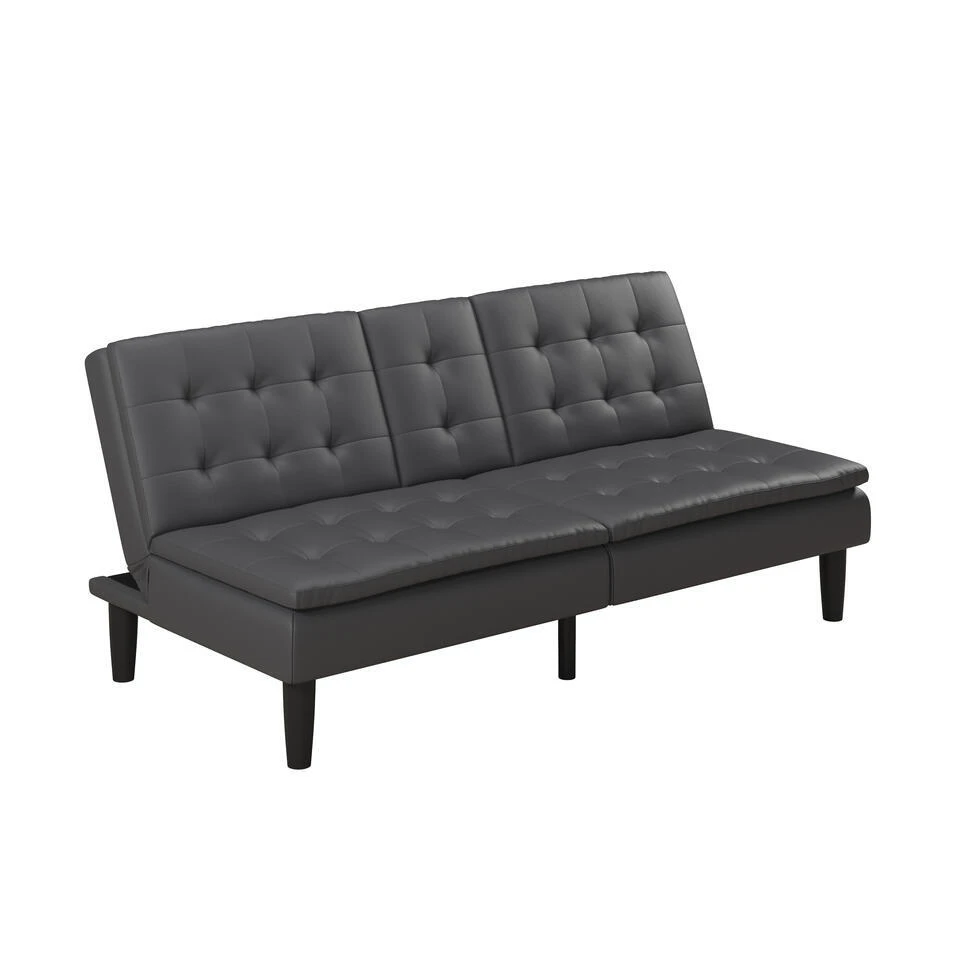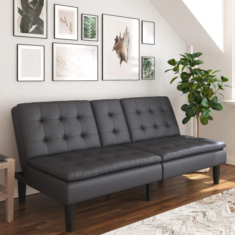 Deze elegante slaapbank combineert een retro-esthetiek met een moderne uitstraling. Het is uitgerust met hoogwaardige golfvering. De zitting van de slaapbank is goed verend en blijft permanent elastisch, zowel voor ontspanning als als bed. De slaapbank is handmatig verstelbaar. Elke zitplaats kan tot 125 kilogram dragen. De bekleding van kunstleer biedt een robuust en onderhoudsvriendelijk alternatief voor echt leer. Het is praktisch en duurzaam.