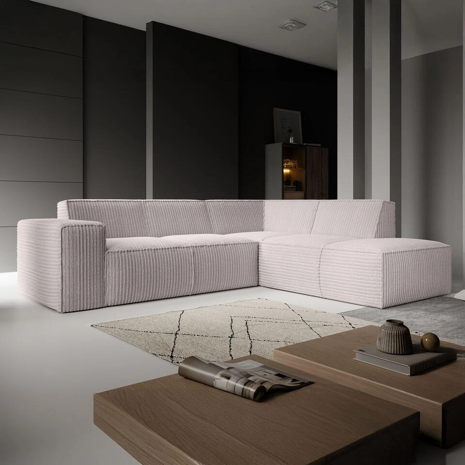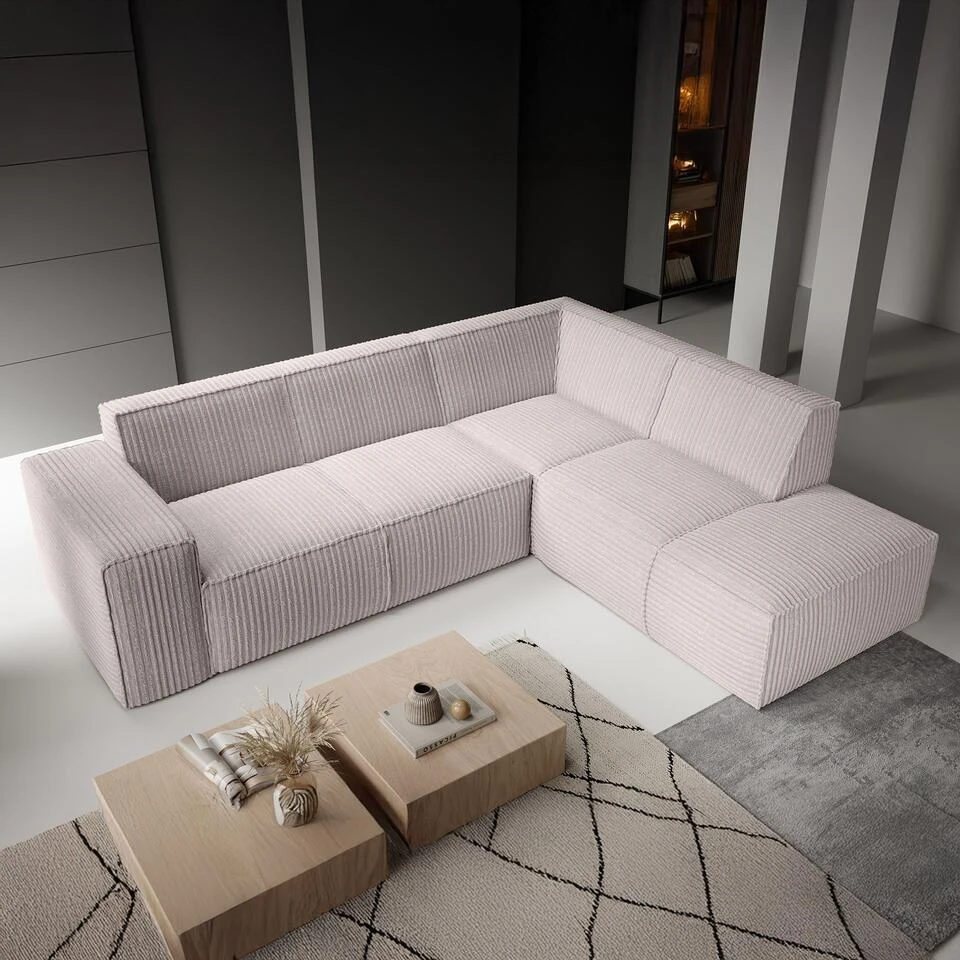 Meubella – Hoekbank Monet – Beige – Fluffy Ribstof – Rechts