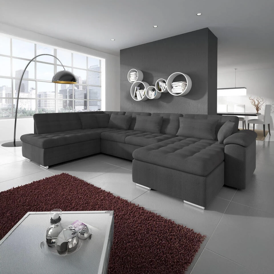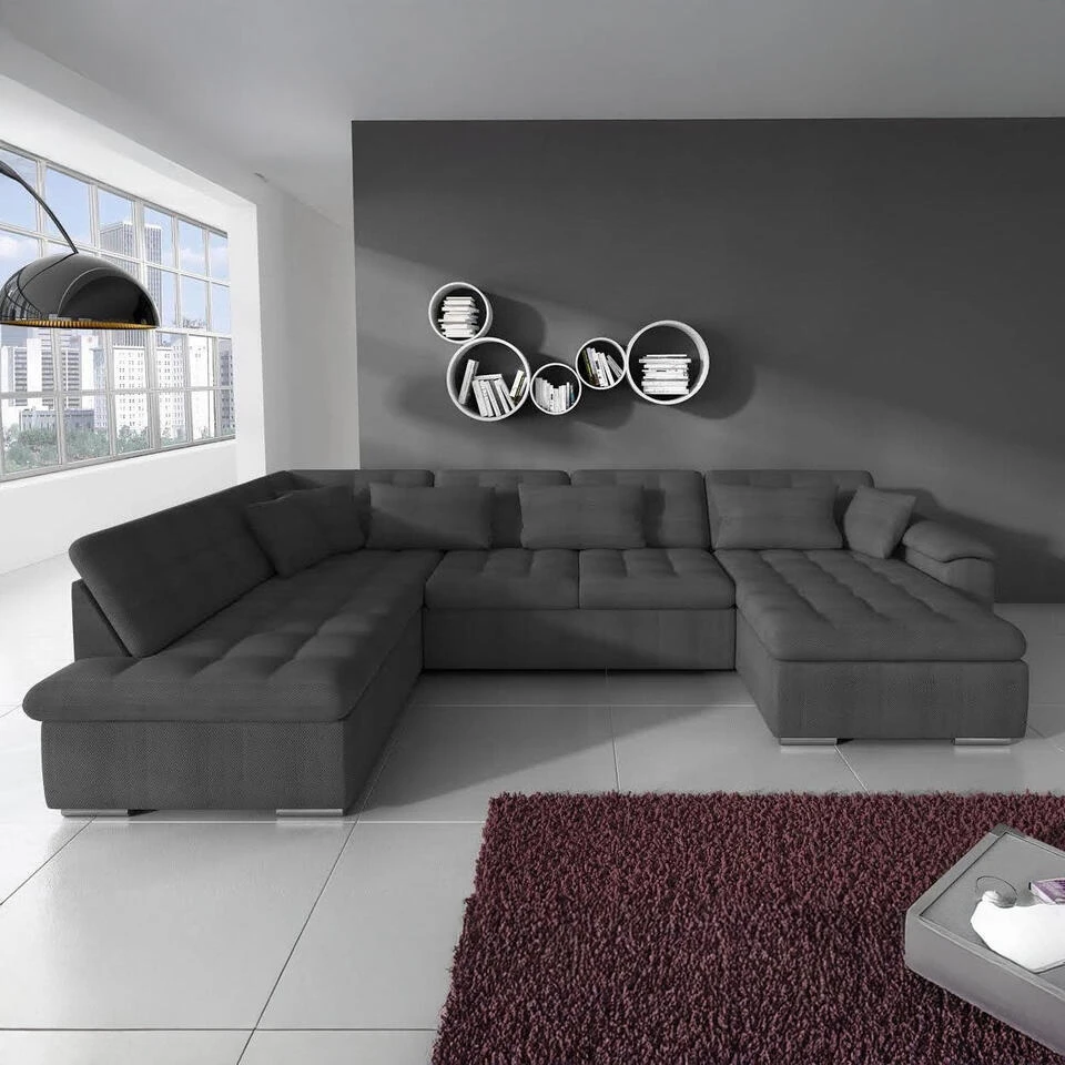 Hoekbank Nicoreta is gemaakt van stof in grijze kleur. De Nicoreta is een bank in U-vorm. Staat op lage, zilverkleurige pootjes. Heeft vaste zit- en rugkussens. Inclusief bijpassende sierkussens. Het meubel wordt ongemonteerd geleverd. Je dient het dus met behulp van de bijgeleverde handleiding zelf in elkaar te zetten.