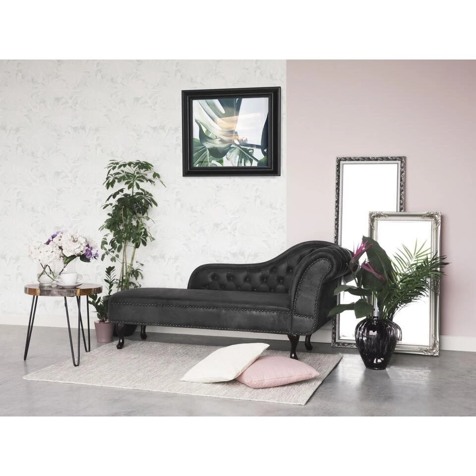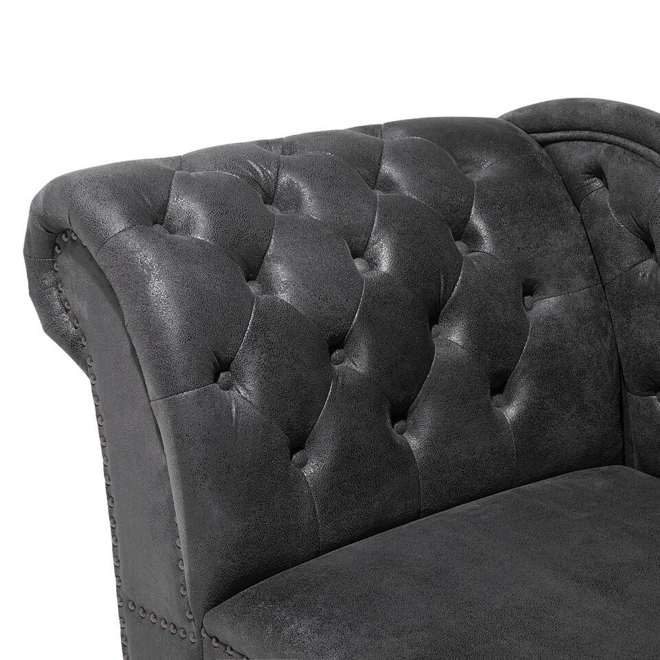 Belangrijkste eigenschappen: Ontspannende zitpositie, Perfect voor zowel slaapkamer als woonkamer, Stijlvolle Chesterfield-look, Stijlvolle klinknageldecoratie aan de rand, Versiert met knoopdetails, Rondom bekleed en dus vrij op te stellen