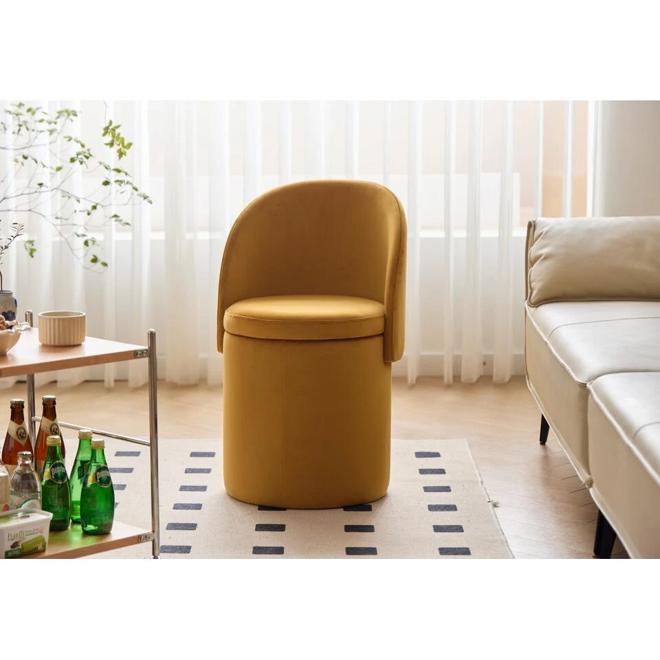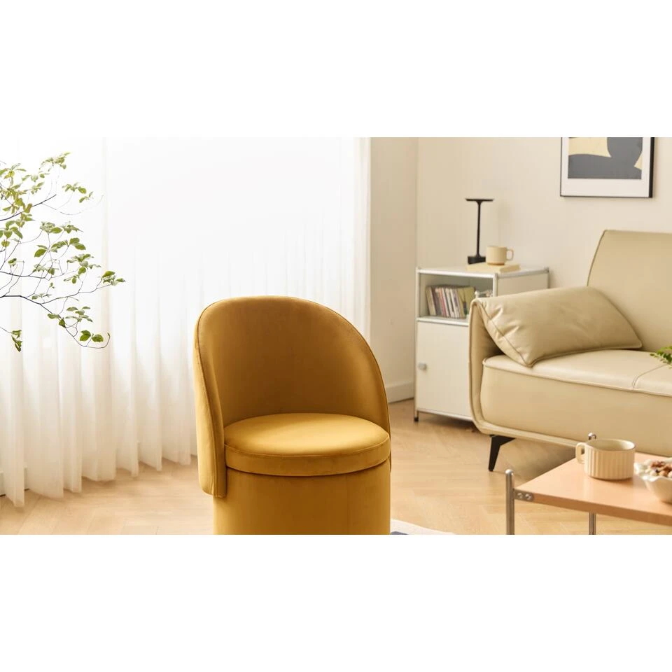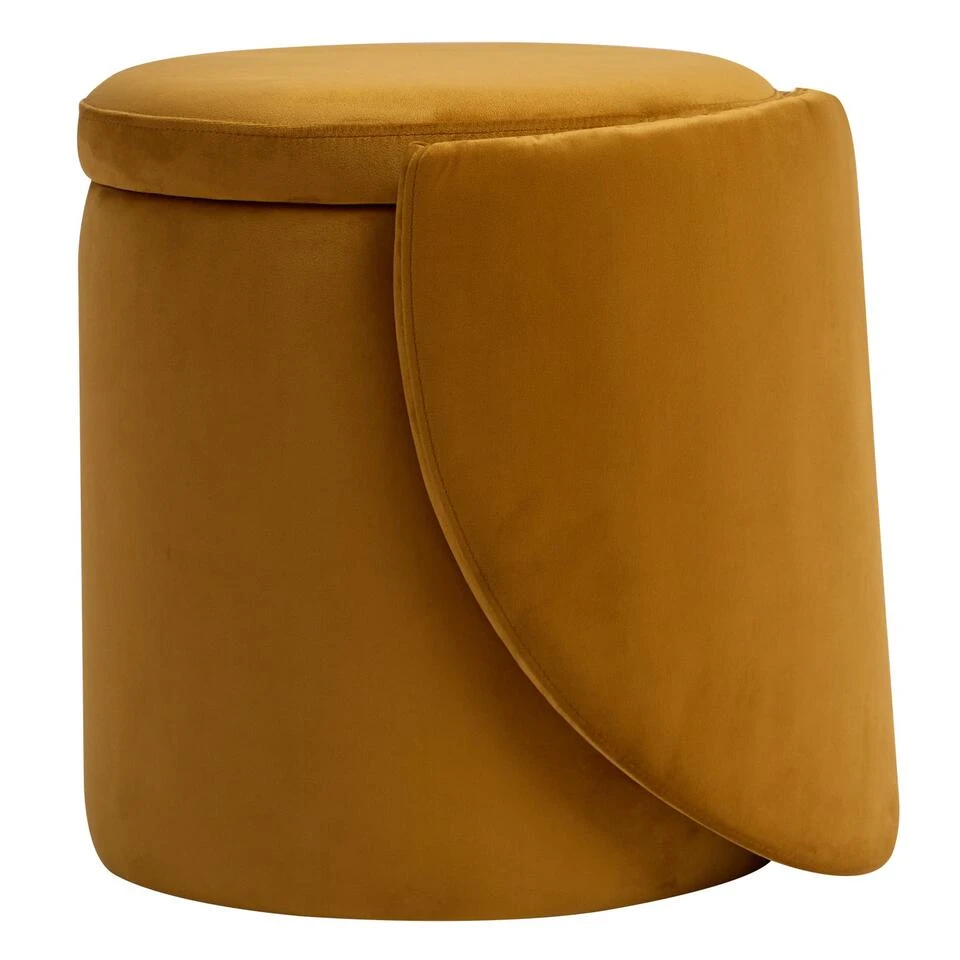 Poef Met Rugleuning En Opbergruimte In Geel Fluweel.