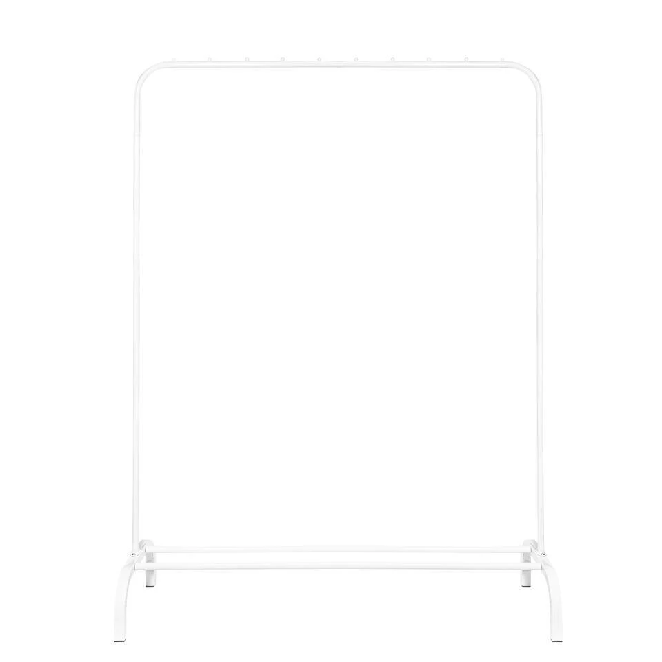 Het QUVIO kledingrek met schoenen opbergruimte past door de neutrale witte kleur binnen elk soort interieur. De bovenkant is zo gemaakt dat de kledingitems niet tegen elkaar aan worden gedrukt en zo goed kunnen drogen, mochten ze net uit de was komen. Bespaar ruimte door deze kledinghangers te gebruiken waar je 5 broeken aan kunt ophangen.