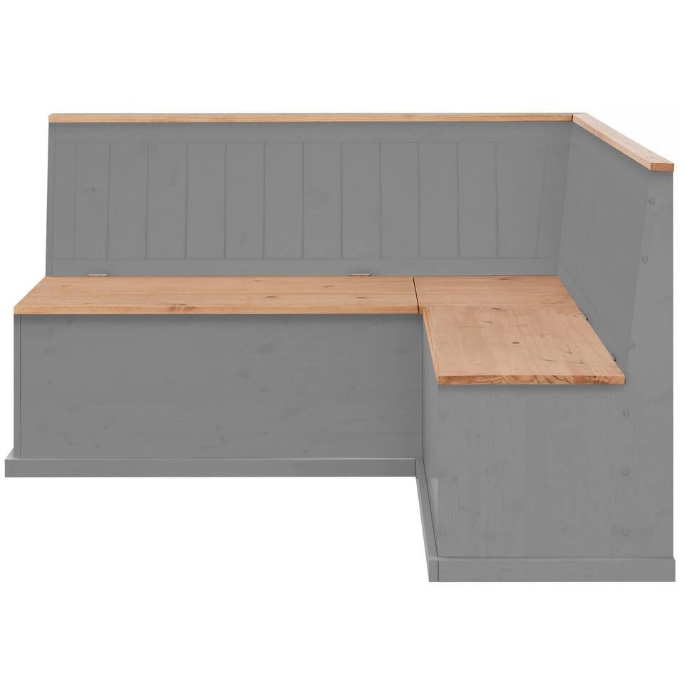 De hoekbank met praktische opbergruimte straalt een natuurlijke flair uit in de inrichting van je eetkamer. Hij vult je interieur aan in de trendy landelijke stijl en is ontworpen met prachtige houtlook accenten. Met zijn ingetogen kleuren kan de bank gemakkelijk gecombineerd worden met je bestaande inrichting. Onder de zitting is handige opbergruimte voor bijvoorbeeld kussens textiel of woonaccessoires. De bank is gemaakt van hoogwaardig massief grenen. De hoekbank met praktische opbergruimte past in elke woonstijl.