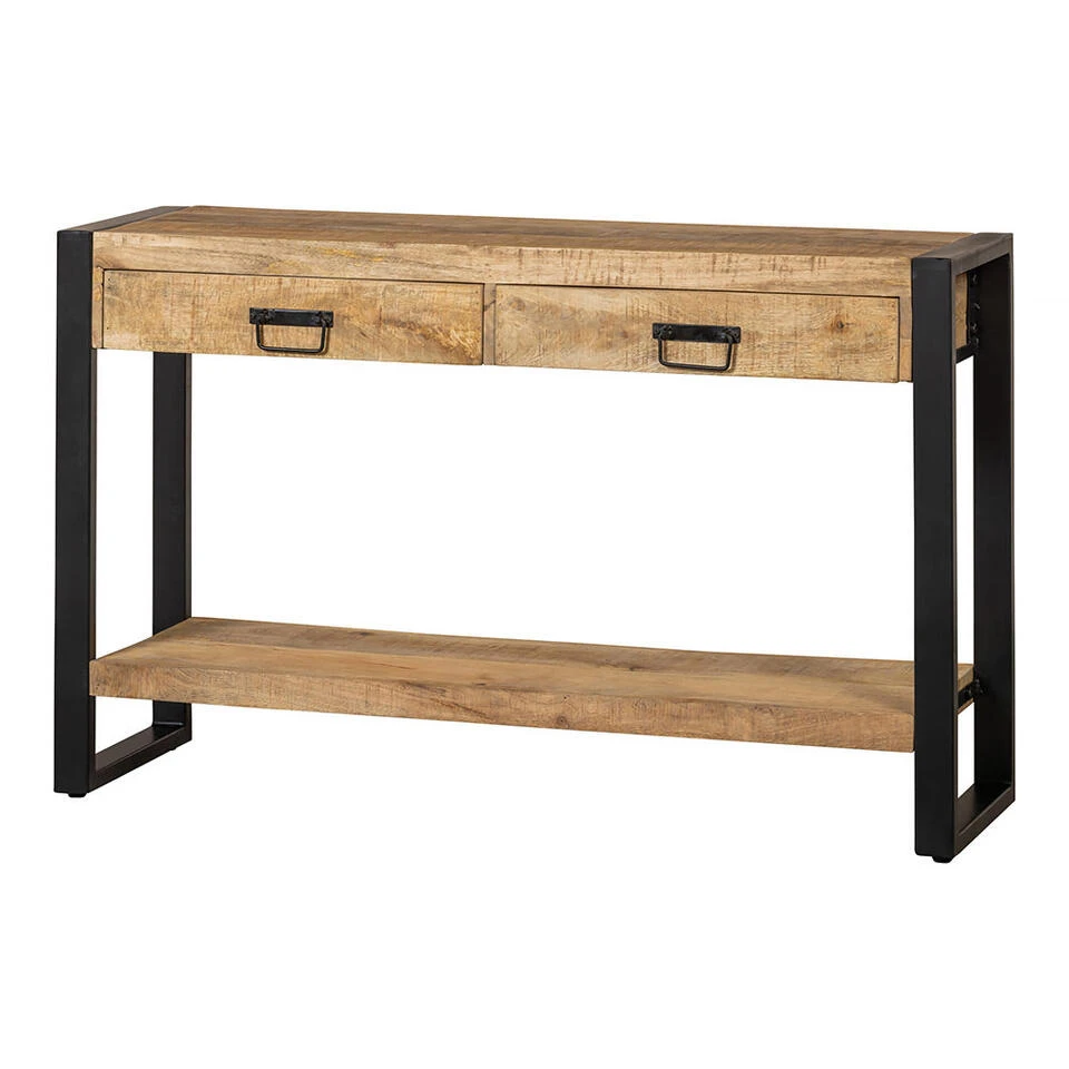 Over het massieve mangohout worden meerdere lagen houtolie en een blanke, natuurlijke bijenwas aangebracht om het hout te beschermen tegen vocht, vuiligheid en kringen. De handgrepen en de frames zijn gemaakt van zwart gepoedercoat metaal.