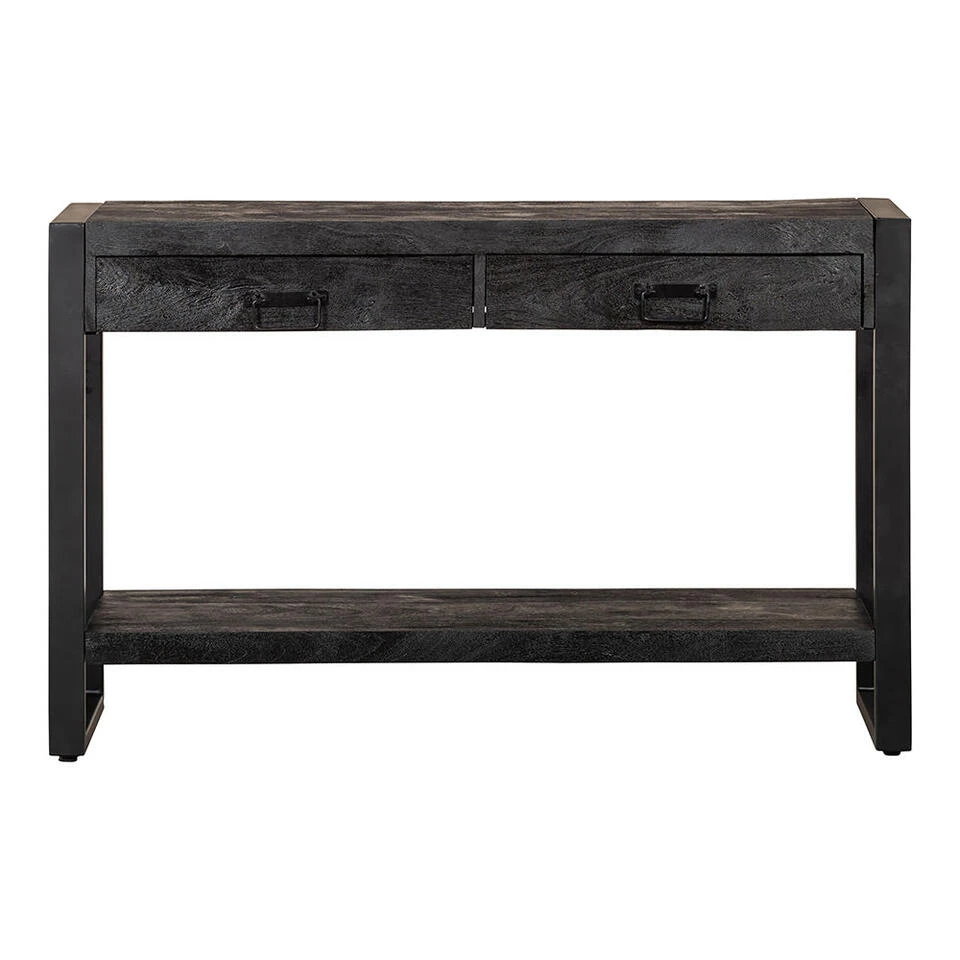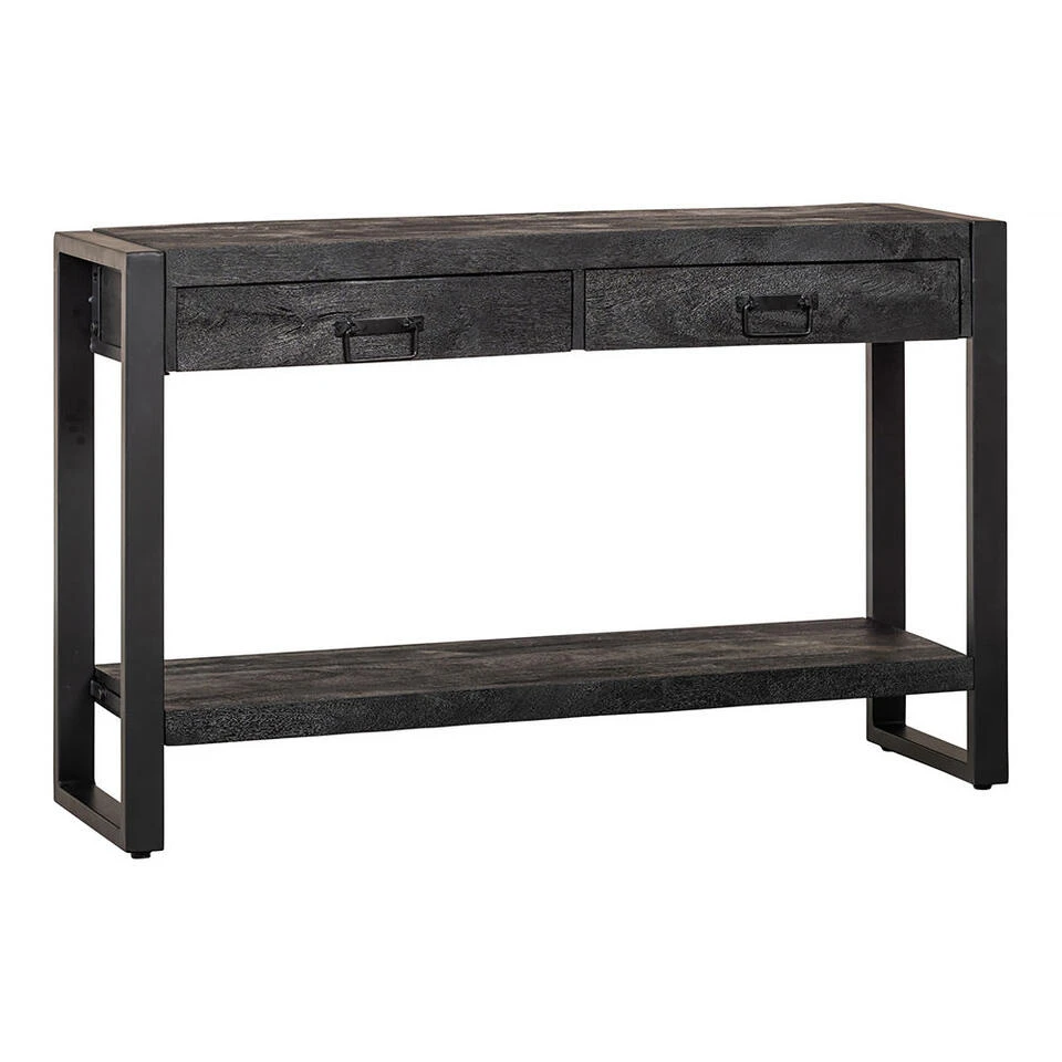 Deze sidetable uit de Atlanta-collectie is een mooie aanvulling op ieder interieur. Door het zwarte mangohout en het stalen frame is hij te combineren met verschillende stijlen. Hij is perfect voor het opvullen van een lege muur, maar naast uw bank of als tv-meubel zou hij ook goed kunnen passen. De twee lades bieden opbergruimte voor kleine spullen.