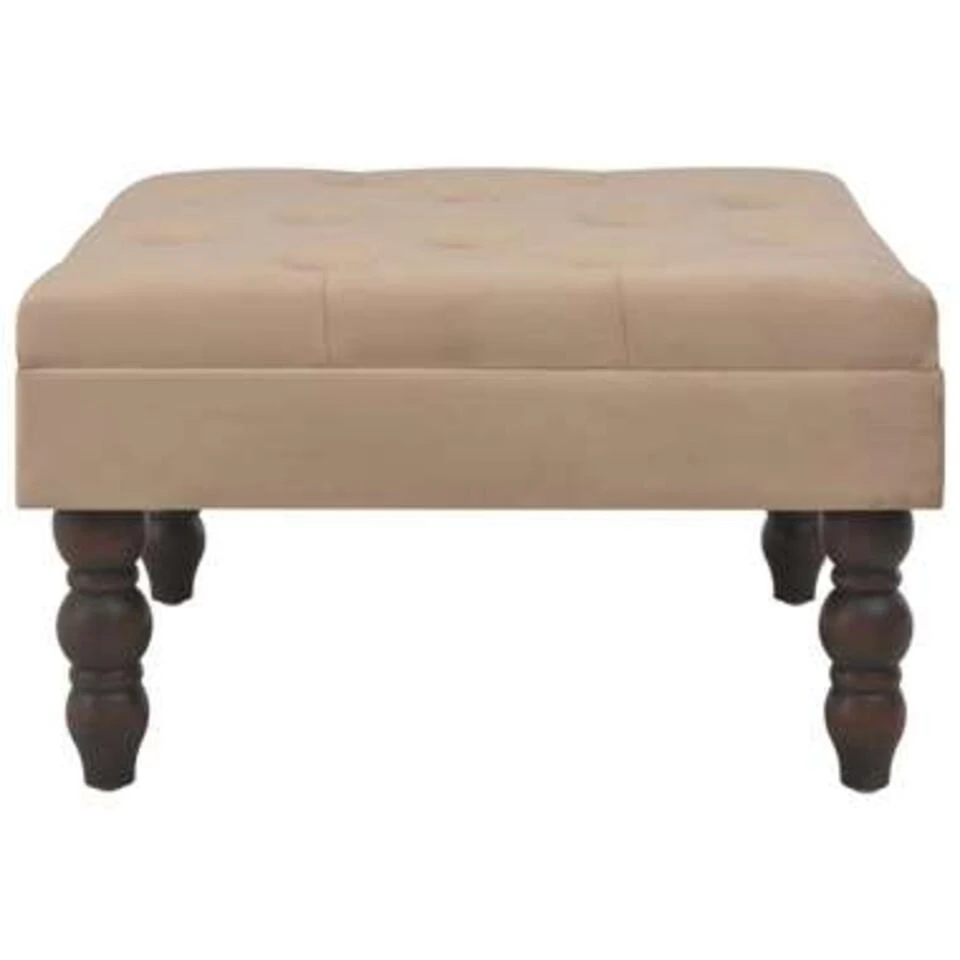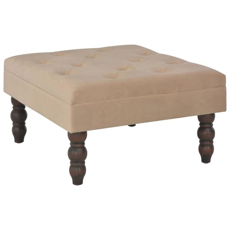 Deze trendy poef is bekleed met zacht en comfortabel fluweel met sierknopen. Bovendien dragen de houten poten bij aan de stabiliteit en duurzaamheid van de kruk. Plaats de fluwelen kruk voor een bank of een fauteuil en hij draagt bij aan een comfortabele sfeer in elke kamer. Door middel van een blad (niet inbegrepen) kan deze poef zelfs als salontafel worden gebruikt.