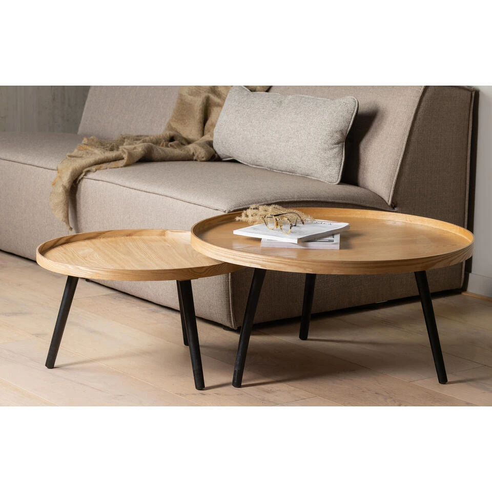 WOOOD Mesa Bijzettafel XL 39x78x78 (hxbxd) is een veelzijdige, ronde bijzettafel uit de collectie van het Nederlandse merk WOOOD. De Mesa Bijzettafel heeft een rond tafelblad met opstaande rand en een diameter van 78 cm. De afwerking in essenhout fineer maakt de bijzettafel geschikt voor meerdere interieurstijlen. De houten poten hebben een matzwarte aflak en een hoogte van 39 cm..